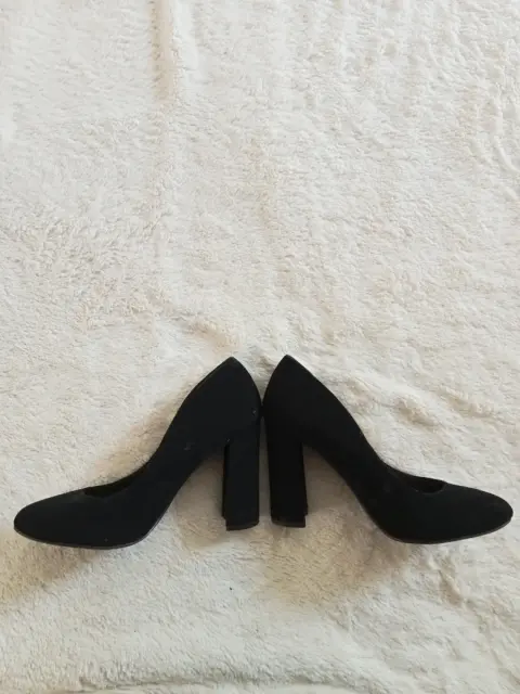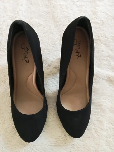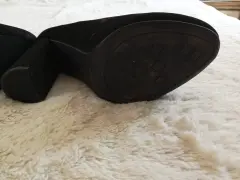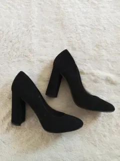 Zapatilla negra marca americana YNot, tipo gamuzina. Talla 4.5.Tacón de 10cm.