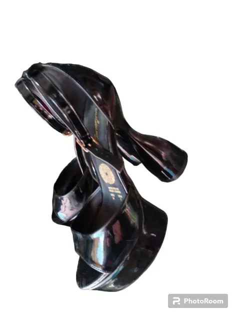 Zapatilla negra de charol con plataforma de 10 cm numero 4 con tacón redondo
