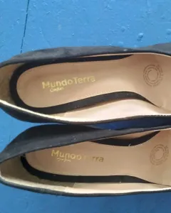 Zapatilla negra Mundo terra #6. Zapatilla nueva, en perfecto estado solo una puesta, es tipo gamusa,
