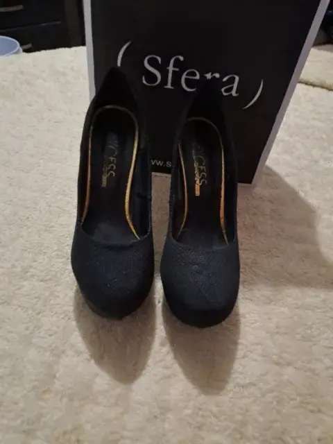 Hermosa Zapatilla negra para dama, en buenas condiciones, tacón número 15, plataforma, esperando una segunda oportunidad número 51/2
