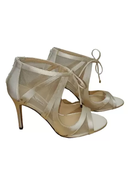 Zapatilla Nina Cherie D-orsay. Nina Cherie D-orsay zapatilla, talla 8. 5-Us, color beige, Tela y parte superior de malla con acento de lazo, punta de peep, cierre de cremallera posterior, Forros hechos por el hombre Funda ligeramente acolchada, tacones miden 3/4 de pulgada, suela artificial, detalle en fotos.