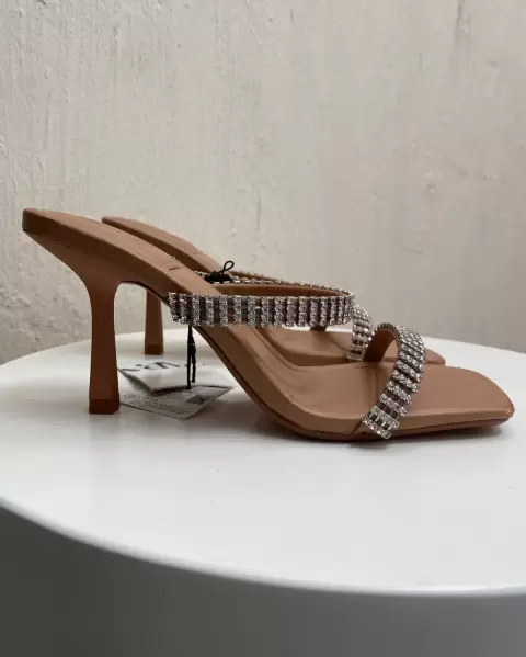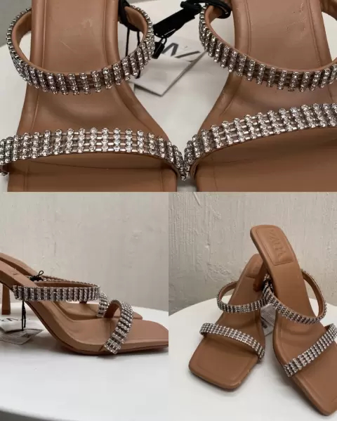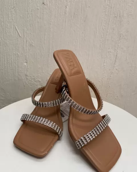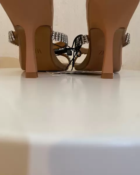 Zapatilla nude con cristales zara. ✨✨Hermosas zapatillas descubierta color nude muy combinable 6cm altura, nuevos con etiqueta Solo tiene unos ligeros talloncitos que muestro en la foto 5