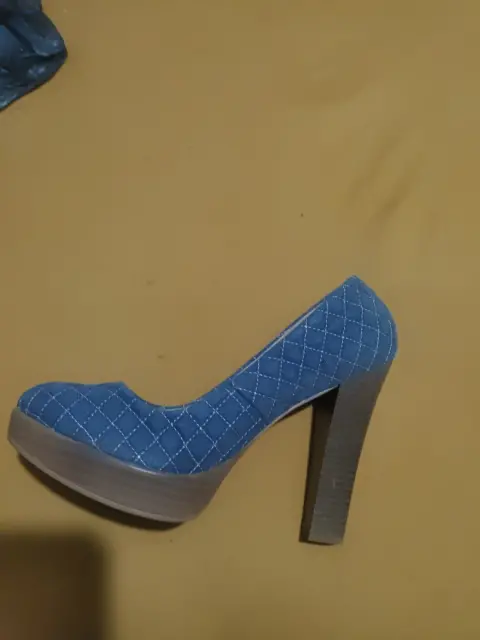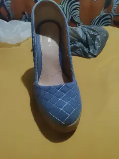 Zapatilla plataforma. Azul mezclilla. Y café. Número 6