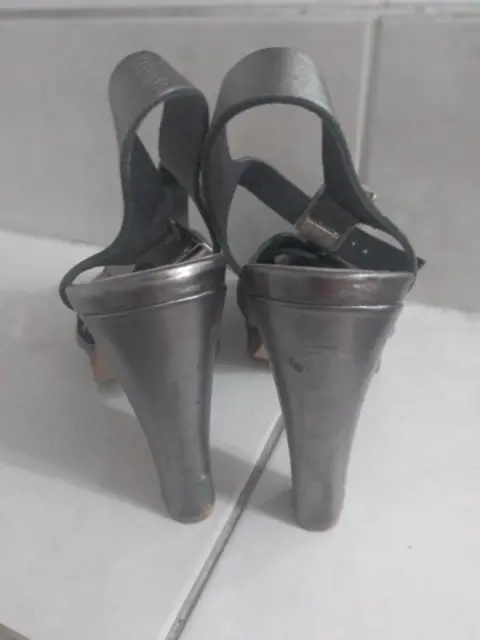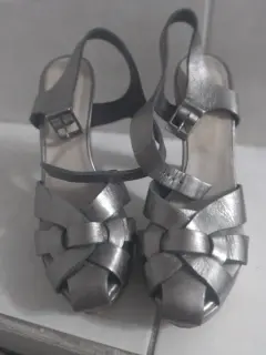 Zapatilla plateada super cómoda número 6 tacón del 12 en perfecto estado con abrochadera