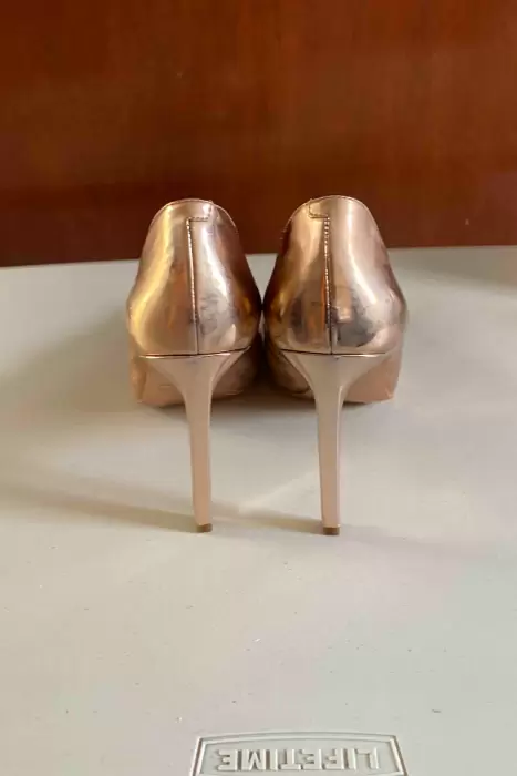 Zapatilla Rosa DoradoMarca Nine West Color Rosa DoradoCorte/Forro y Suela SintéticoTalla 5.5 Usa 8.5Tacón altura 10 cm