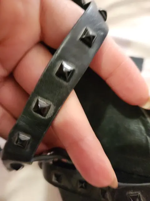 Zapatilla steve madden estoperoles talla 5 tacon num 14. Raspones de uso delanteros, no le faltan estoperoles dos veces usados.