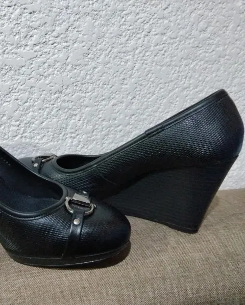Zapatilla tacón de puente. Zapatilla tacon de puente, marca Flexi, número 6 1/2, corte vacuno, forro sintético, suela sintética, plantilla cerdo, alto de tacon 9 cm, tiene pequeños detalles poco visibles en el tacon del pie izquierdo.