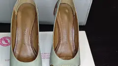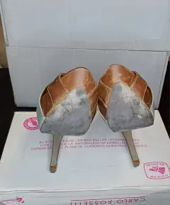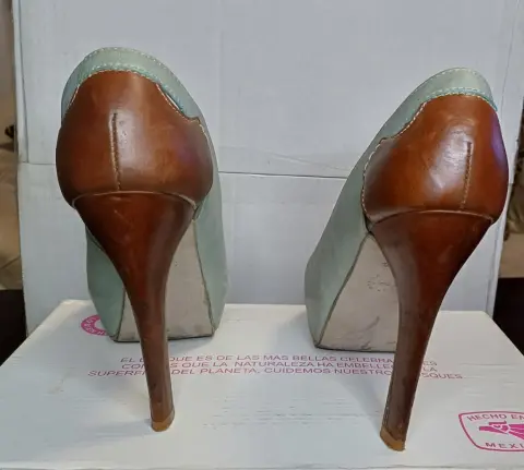 Zapatilla estilo boca de pescado, bitono, material piel y forro sintético, 11cm de alto de tacón