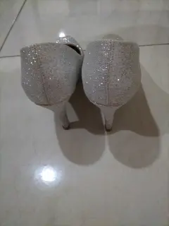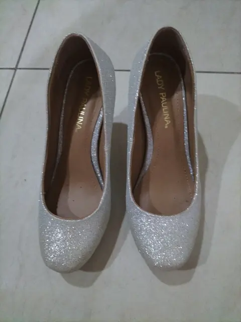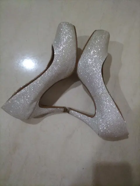 Zapatillas para fiesta, color plata, número 23, con brillos, tacón 8. Poco uso