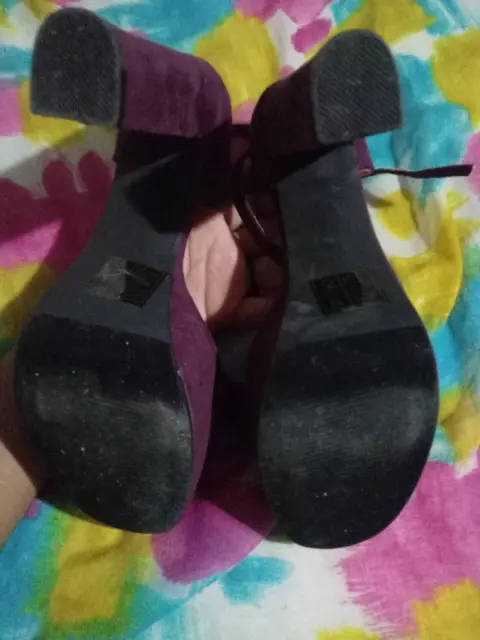Zapatillas. Talla 7½Color vino Cintas en los tobillos Tacón alto Seminuevas Tipo gamuza