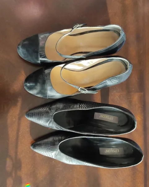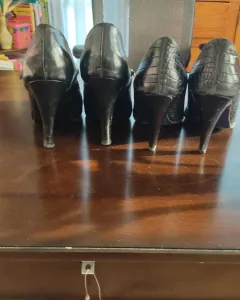 Son 2 pares de zapatillas usadas, del número 6 mexicano, las de correa son tacón del 11 y las de. Cocodrilo son del 9, tienen desgastes por el uso