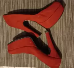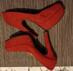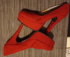 ZAPATILLAS CON PLATAFORMA DE 3 CM, DE USO #23,COLOR ROJAS,DETALLE INTERIOR DESGASTADO,EN ÚLTIMA FOTO,TACON 12 CM ESTA PRENDA ENTRA EN 2 PIEZAS POR $150,MARCA CINDERELLA