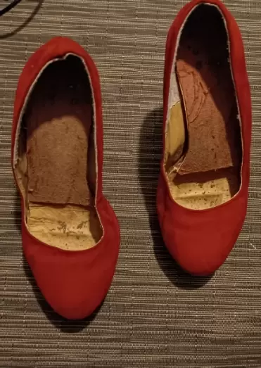 ZAPATILLAS #23 DE USO ROJAS. ZAPATILLAS CON PLATAFORMA DE 3 CM, DE USO #23,COLOR ROJAS,DETALLE INTERIOR DESGASTADO,EN ÚLTIMA FOTO,TACON 12 CM ESTA PRENDA ENTRA EN 2 PIEZAS POR $150,MARCA CINDERELLA