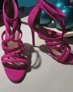 Zapatillas abiertas. Zapatillas abiertas rosa fiucha de tacón de punta