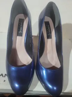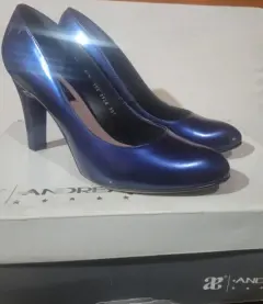 Zapatillas Andrea de charol color marino, altura 9 cm, en perfecto estado