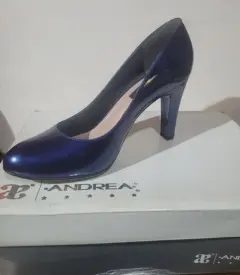 Zapatillas Andrea. Zapatillas Andrea de charol color marino, altura 9 cm, en perfecto estado