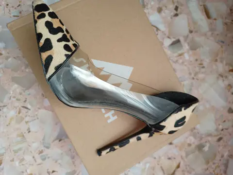 Zapatilla animal print negro con nude y transparenciaLa use una vezPerfecto estadoTacon 11 cm