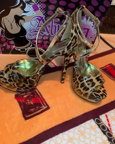 Hermosas zapatillas animal print, de plataforma muy discreta, tacón 10cm, talla 4, súper cómodas !!Nuevas
