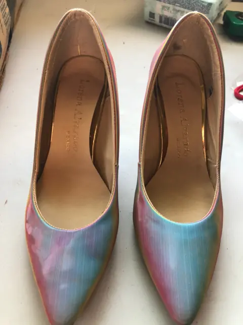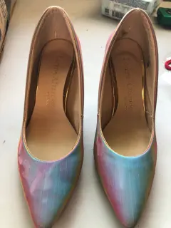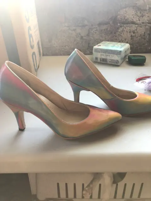 Zapatillas artesanales tornasol. Zapatillas artesanales de fiesta tornasol hechas a mano por encargo. Talla 2.5, sin detalles estéticos, se usaron en 2 ocasiones