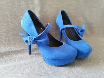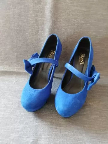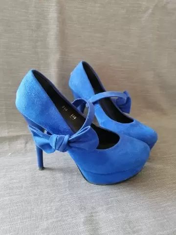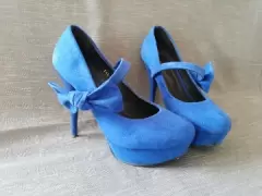 Zapatillas azul eléctrico tela gamuza, son semi nuevas, del número 3.5 y la altura del tacon es de 10 cm