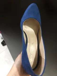 Zapatillas punta redonda color azul rey, tacón de 8 cm, sin plataforma. Seno nuevas