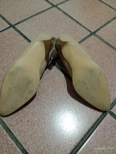 Zapatillas color beige, tacón bajo, poco uso, así como se ve en la foto, marca Yaeli, son del número 23