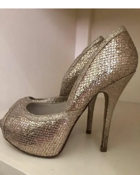 Zapatillas brillosas. Hermosas zapatillas brillosas plateadasIdeales para fiestas y ocasiones especialesSin detalles