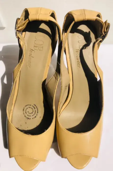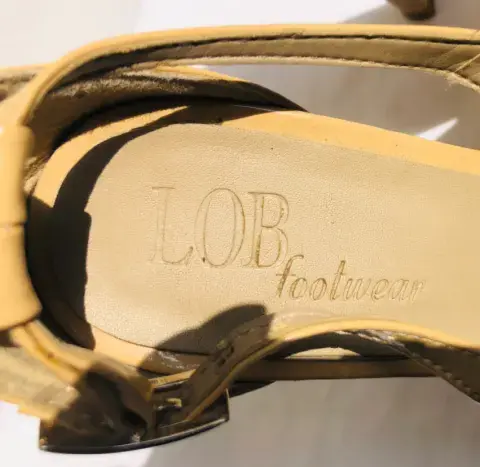 Zapatillas camel para mujer LOB. Zapatillas de charol tacón altoMarca LOBTacón de agujaColor camelTalla 2.5Alto de tacón 10 cmSon muy cómodas para usarNo tiene detalles relevantes más que por el usoEstán en perfecto estado para usar