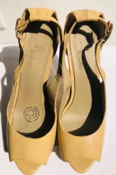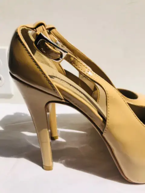 Zapatillas de charol tacón altoMarca LOBTacón de agujaColor camelTalla 2.5Alto de tacón 10 cmSon muy cómodas para usarNo tiene detalles relevantes más que por el usoEstán en perfecto estado para usar
