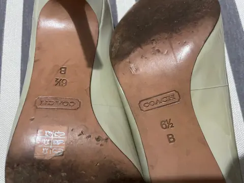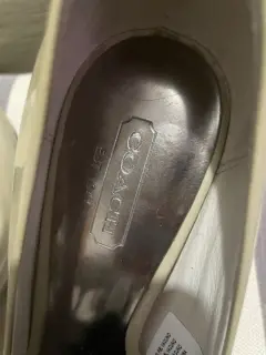 Lindas zapatillas en charol color gris , el tacón es súper cómodo tienen un pequeño herraje de la marca en la parte de atrás, solo las use un par de veces