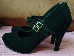 Zapatilla negra, con doble correa ajustable, tacón de 8 cms aproximadamente, gamuza, talla 3