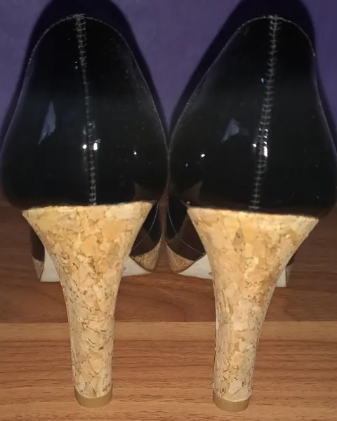 Son unas zapatillas muy lindas de charol, con tacon de corcho, estan en perfecto estado, sin ningún rayón ni rasguño, solo se utilizo una ocasión.