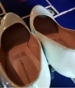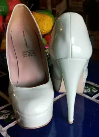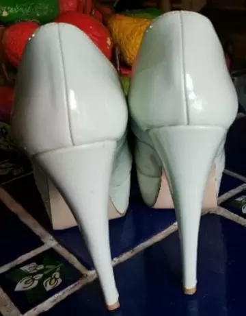 Hermosas zapatillas de charol con plataforma #5 color menta tacón 13 cm usadas en perfecto estado muy comodas