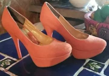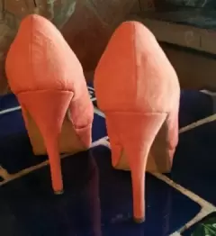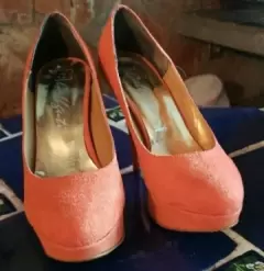 Hermosas zapatillas con plataforma de gamuza color naranja perfecto estado se usaron una ves #4 y medio tacon 13cm puede quedar también a #5