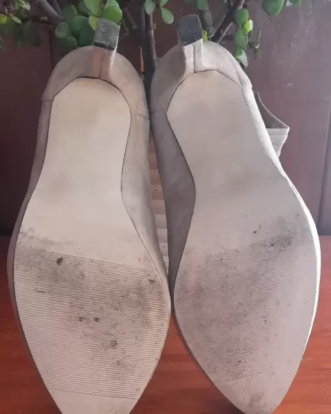 Zapatilla de gamuza, color beige, tacón de 7cm.