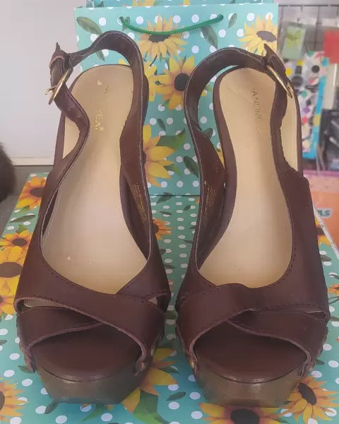 Zapatillas de plataforma café. Zapatillas de plataforma y tacón, corté vacuno, forro sintético y suela sintética. Solo se usaron una vez, no cuento con la caja pues ya tienen tiempo. La plantilla interna está un poco maltratada por la puesta y el tiempo de estar guardados. Se envía en caja reciclada.