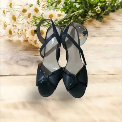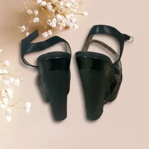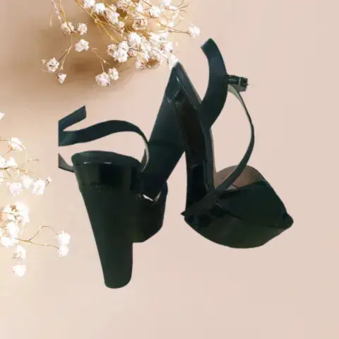 Lindas zapatillas color negro, 15 cm de alto con plataforma con cinturón ajustable muy bonitos marca andrea puesta solo una veZ.