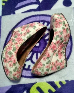 Zapatillas de plataforma floreados de color beige y flores durazno muy bonitas la plataforma ayuda a aguantar más el tacón solo se usaron una vez