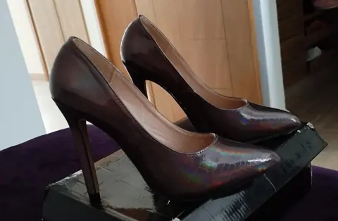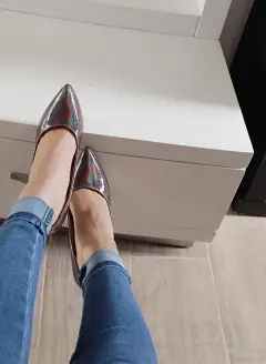 Zapatillas de punta. Hermosas zapatillas color tornasol, tacón estilizado, las puedes combinar con todos tus oufit, están totalmente nuevas y con su caja original.