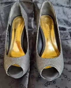 Zapatillas de punta abierta. Hermosas zapatillas talla 24.5, corte de piel en color negro/plata. En excelentes condiciones, un par de puestas. En vivo son mas hermosas, ideales para fiesta🥰Con plataforma interna de 3 cm que las hace muy comodas a pesar de sus 12.5 cm de alto.Te invito a visitar mi closet y si te gusta algo mas te armo un paquete 😉