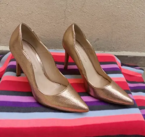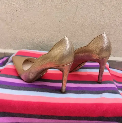 Zapatillas de punta bronce tornasol. Miden 10 cm de alto, el color está muy padre, es tipo bronce tornasol y se ven modernas. En la compra de estas zapatillas te enviaré un detalle sorpresa!