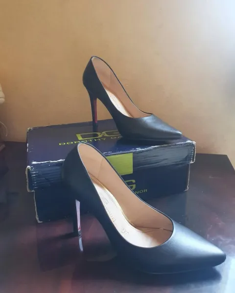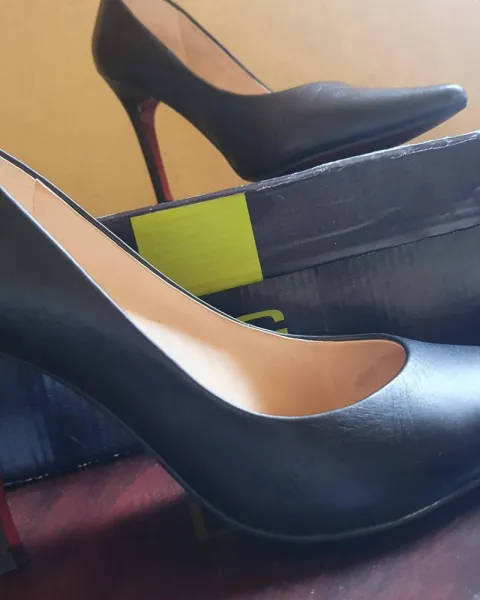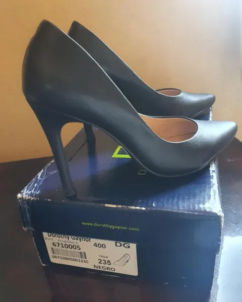 Zapatos de tacón color negro mate como nuevos un solo uso, medida de tacón 10 cm delgado, excelentes para usarlos con ropa casual