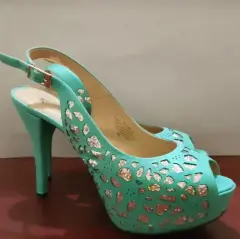 Buen estado #26 tacón 10 CM forro sintetico color jade diamanta