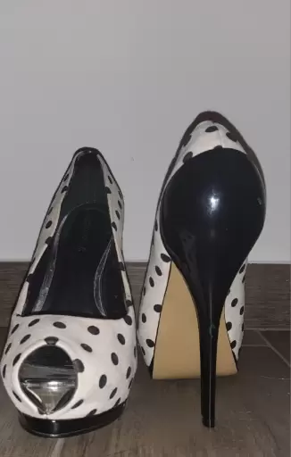 Zapatillas talla 25 son bastante cómodas y solo se usaron 1 vez como se puede apreciar en la suela fe la zapatilla. El tacón mide 11cm.