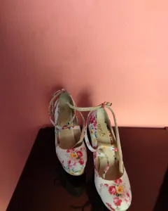 Zapatillas floreadas. Zapatillas floreadas Color beige con flores en buen estado