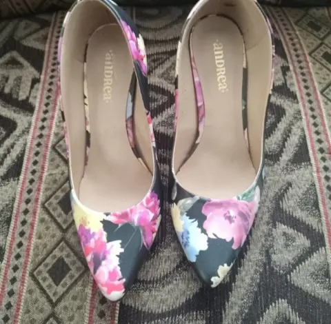 Zapatillas marca Andrea floreadas ,tacón del número 9