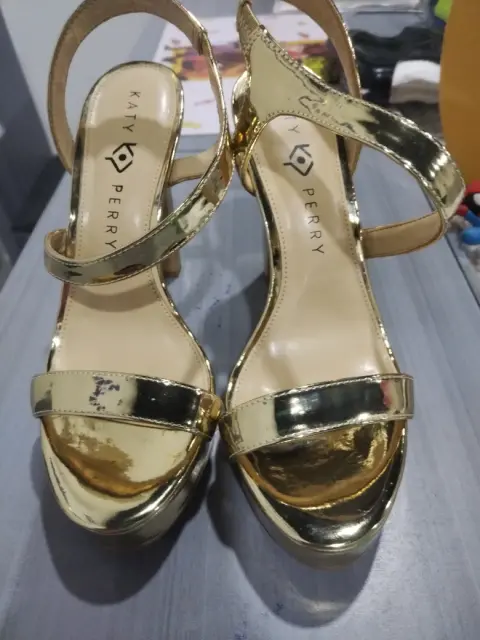 Zapatillas katy perryColor doradoDe correaSeminuevasAlto de tacon 12cm aproximadamenteTalla 24.5