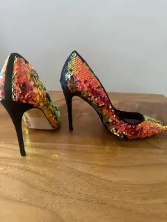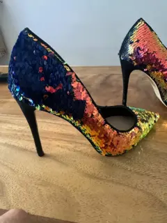 Zapatillas Aldo de doble vista, las lentejuelas de voltean y quedan en color azul como se ve en una de las fotos