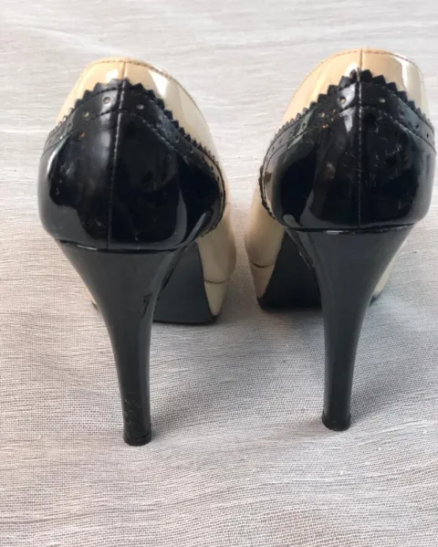 Par de Tacones LOB en olor beige y negro gloss, son de piel y están en muy buenas condiciones, tiene leves detalles de uso en el tacón pero no se ven, sin duda son buena opción.