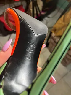 Bellísimas zapatillas Europeas número 38 tacón 11 cms mariposa verde con naranja y plateado.Me las regalaron pero las vendo por que me quedaron un poco grandes solo las usé unas dos horas.